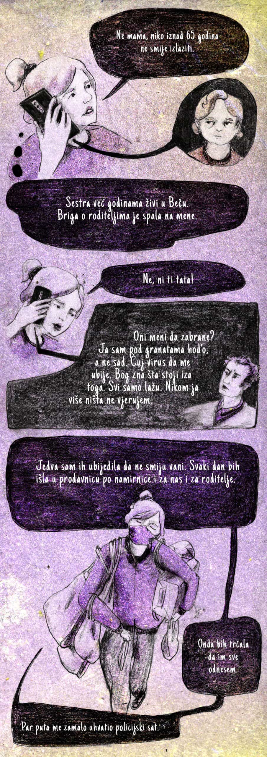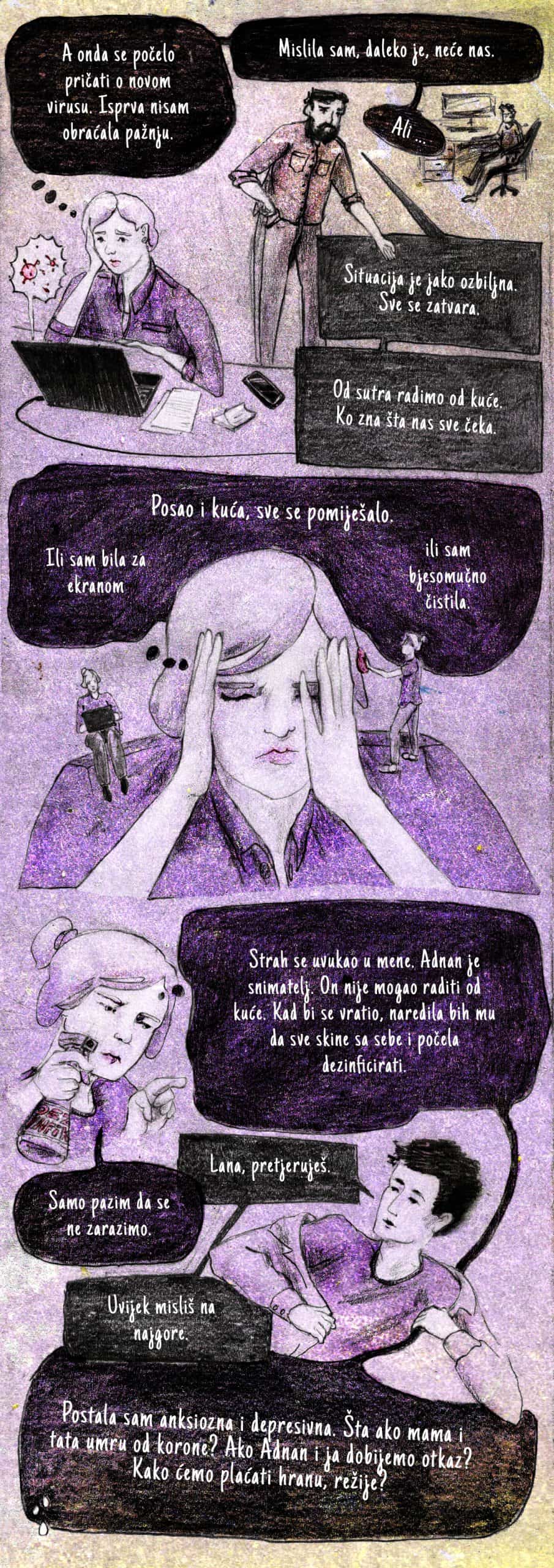 Nakon razgovora sa više od 50 mladih žena u dobi od 19 do 34 godina, istraživačice su uputile poziv spisateljici Lejli Kalamujić da u suradnji s ilustratoricom Danicom Jevđović pomogne kreativno osmisliti prvi od šest stripova koji na jednostavan način prikazuju različite situacije u kojima su se mlade žene u Bosni i Hercegovini i Srbiji našle tokom pandemije te tako doprinesu znanju o količini neplaćenog kućanskog posla, brige i njege koji one obavljaju.
